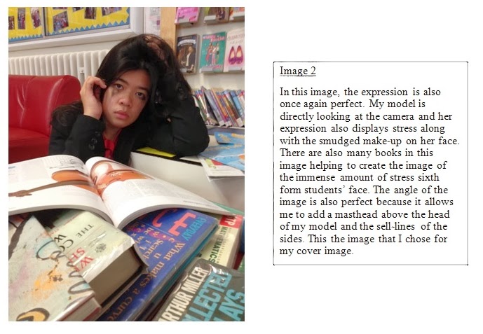 My front cover model will be a student in a uniform, sitting on the floor with many books in front of her. Her facial expression would be a mixture of stress, anger, and sadness. These emotions will be displayed through her appearance - her mascara will be running down her face showing that she has been crying. I chose this because students will be able to actually see what stress can do to you. Along with talking about the results of getting stressed, I will also mention how to deal with this stress.